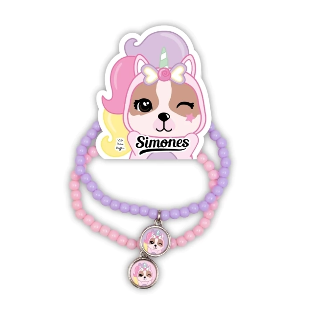 Set de dos pulseras elastizadas con cazuela y dome con Sofía unicornio súper tierno. Una es color lila y la otra rosa pastel. Ideales para usar juntas o compartir con tu mejor amiga. Incluye tarjetita ilustrada pensada para coleccionar o reutilizar.