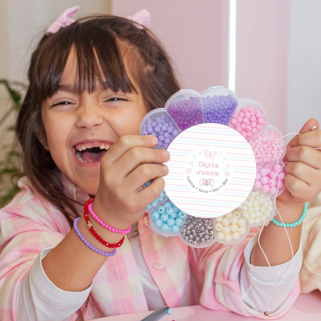 💖La Cajita Juana es un kit para armar collares y pulseras para aprender mientras nos divertimos. Elegir los colores y los materiales nos pone en contacto con la creatividad porque usamos los sentidos en una misma actividad. Permite a los más chicos imaginar una idea y llevarla a cabo ¡mientras juegan!🌈