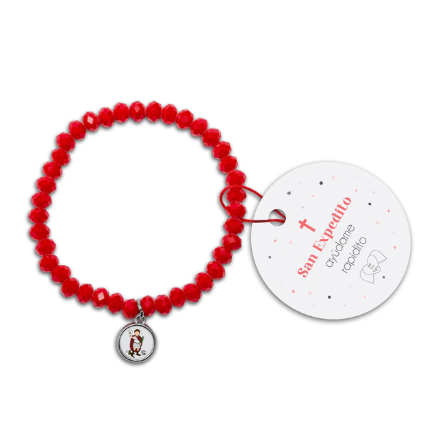 Pulsera elastizada de cuentas de cristales de vidrio con medallita Xfis mini. ¡Es un regalito divino🎁!